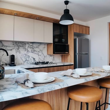 Cocina con barra desayunador